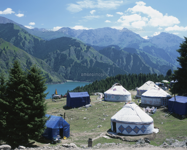 天池とカザフ族のゲル の写真素材 イラスト素材 アマナイメージズ
